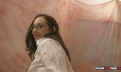 Very magnificent nymph trap glasses nerd anal dildo wanking