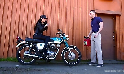 Smoking slut in ripped fishnets Arabelle Raphael bangs anal crevice of one kinky stud