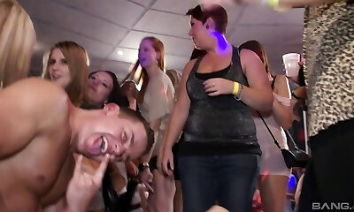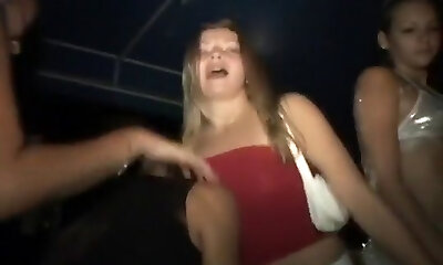 Slutty girls goes wild in the night bar and take part in a naughty group orgy