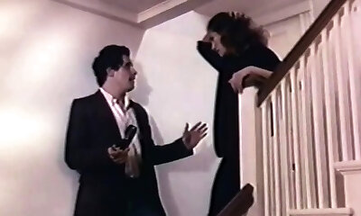 Hot vintage brunette sexy babe blows dick and leans over