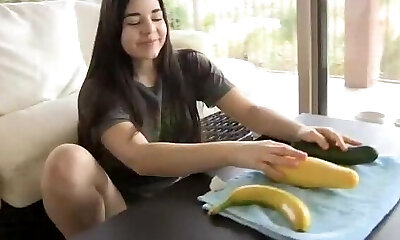 Cucumber in her pussy, cucumber in her culo