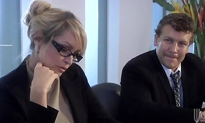 Incredible office threeway with fake tits blondie Courtney Cummz
