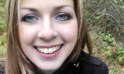 Blonde In Public Deep-throats Dick And Gets Fucked Fast In The Woods