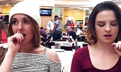 Adorable teen chick shows her tits in a public place